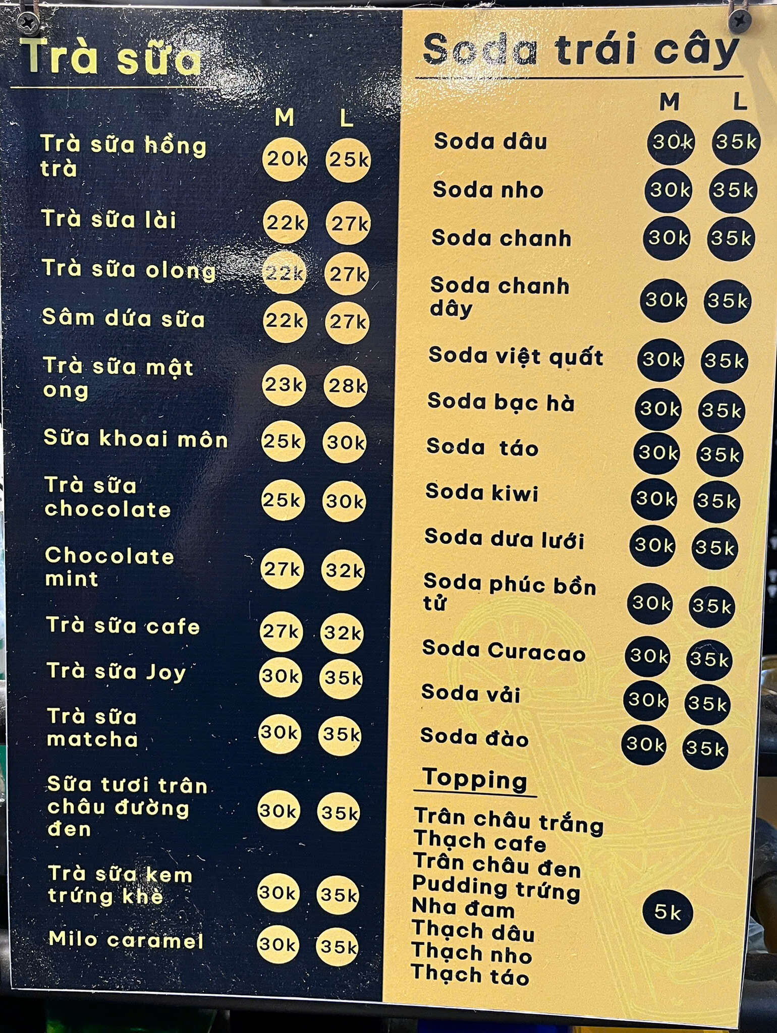 Mã Quầy: UNI-11Tên Quầy: Trà sữa Trà trái cây (JOY) Số đt đặt món: 0902 451 182 Các món chính:Trà sữaTrà trái cây Quản lý: Bùi Trọng HàoHotline: 0964 352 505 (Phản ánh chất lượng dịch vụ)