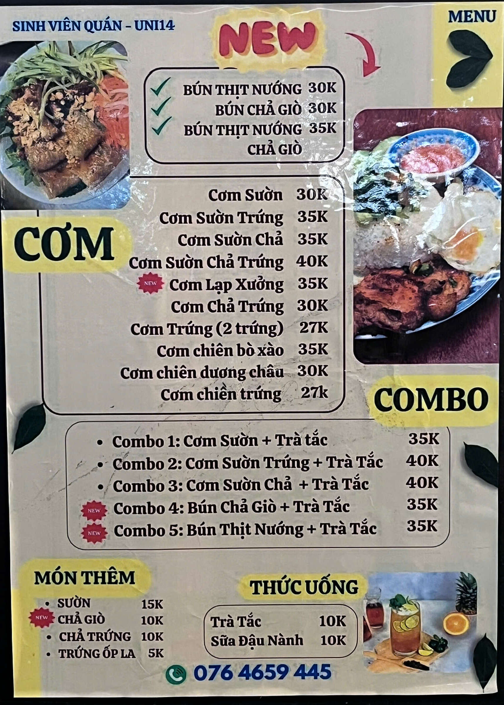 • Cơm chiên dương châu, cơm chiên bò xào, cơm chiên hải sản, cơm xá xíu, cơm chiên trừng, cơm heo quay,….