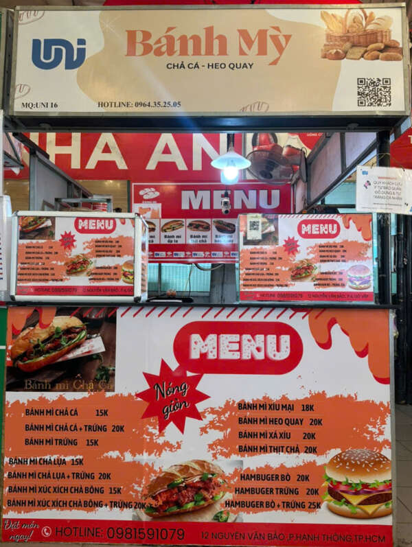 Dù bạn đang vội đến lớp hay cần bữa trưa nhanh, Quầy Bánh Mỳ luôn sẵn sàng phục vụ – nhanh, ngon và no tròn vị!