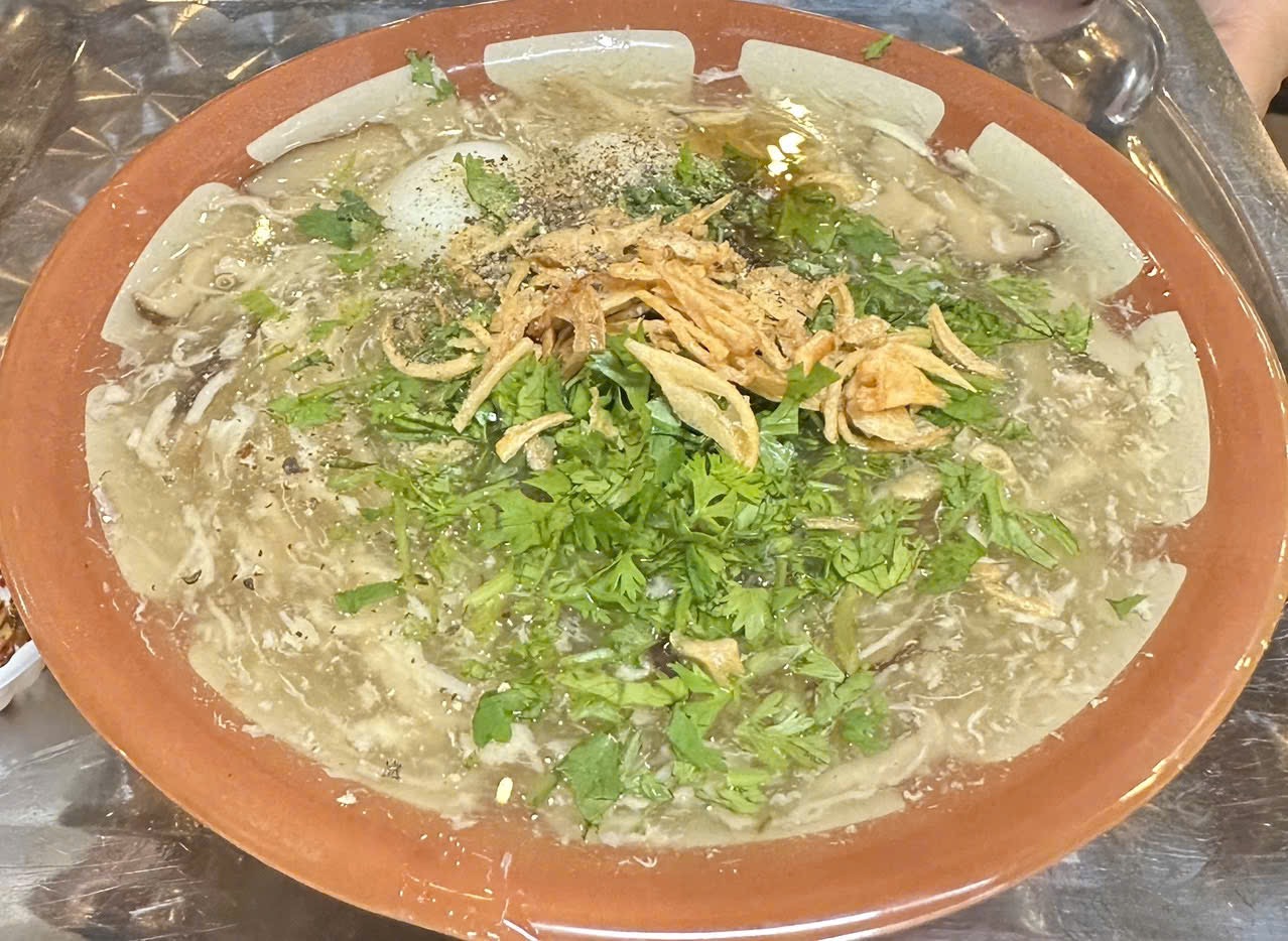 Mỗi phần súp hay bánh canh đều nóng hổi, sánh nhẹ, thịt cua tươi ngọt kết hợp trứng cút, nấm rơm và rau thơm – mang lại cảm giác ấm áp, dễ chịu giữa ngày học bận rộn.